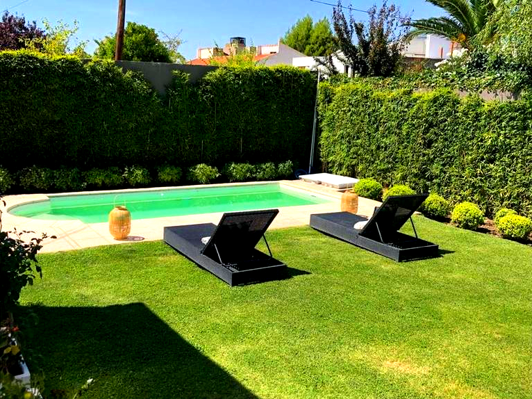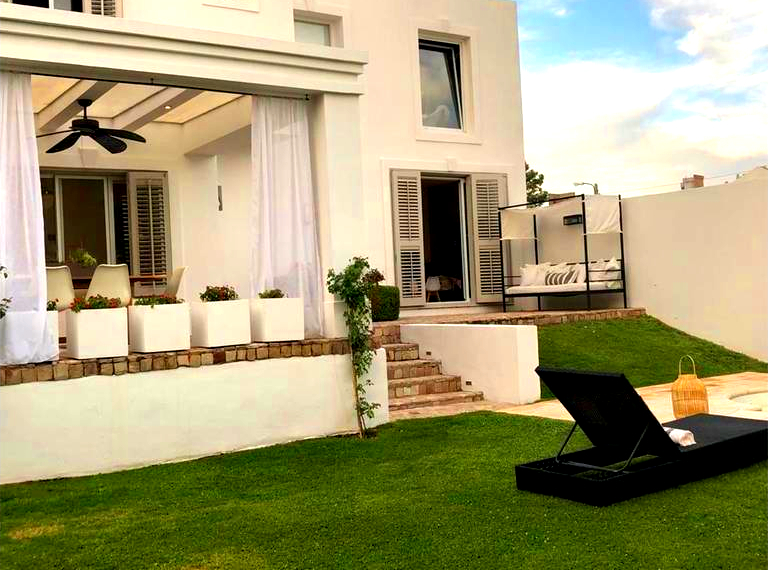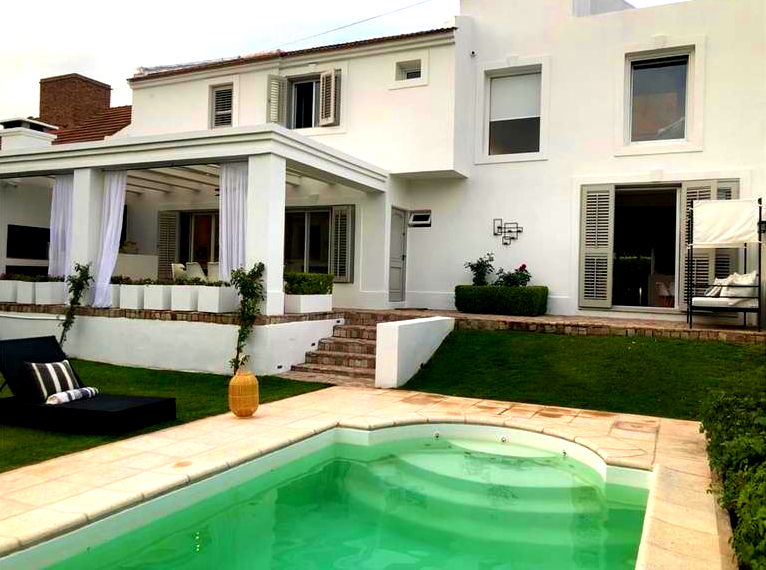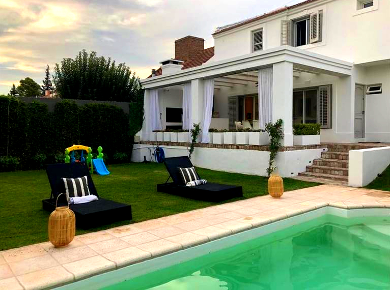 La cocina está totalmente equipada con muebles Johnson, lavavajilla Ariston integrado al mobiliario, grifería alemana, mesada de Silverstone en Blanco Zeus, Anafe de 6 hornallas, campana de acero inoxidable TST. Cochera, lavadero, baulera, patio con quincho que posee una barra, parque con riego automatizado y piscina generosa en sus dimensiones.